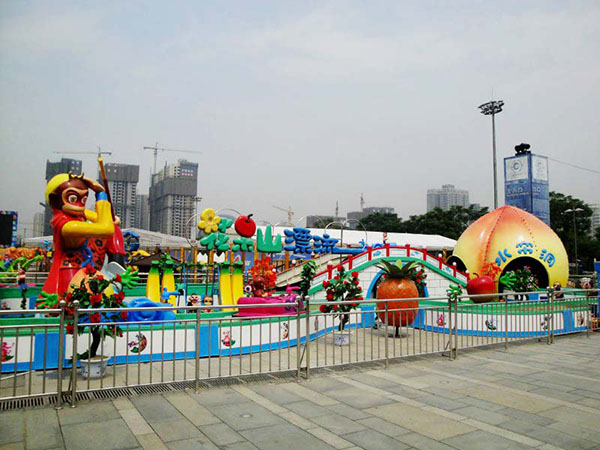 該款產(chǎn)品由水道、坡道、裝飾物等組成,即滿住了孩子們漂流的欲望又把風(fēng)險(xiǎn)控制在可控之內(nèi)。外觀主題采用花果山、孫悟空等家喻戶曉的故事,大眾非常熟悉,易于接受,引起孩子們的乘坐欲望。