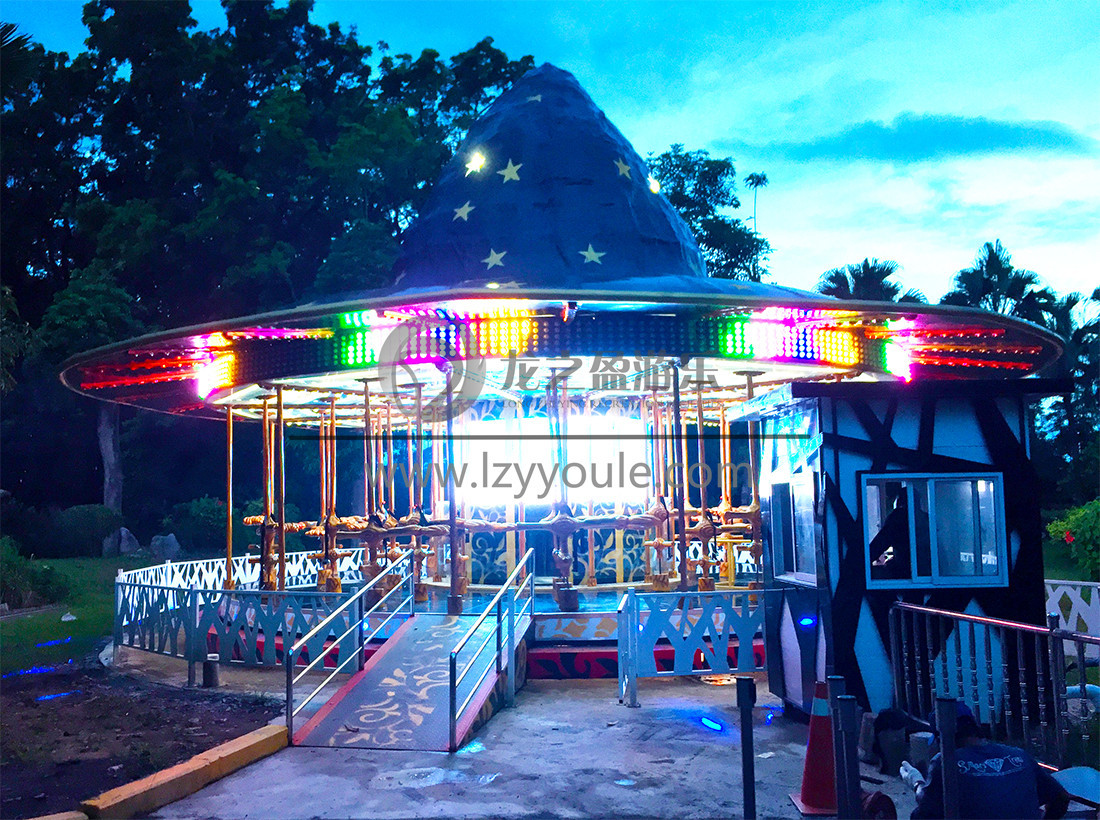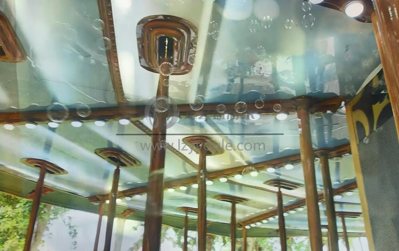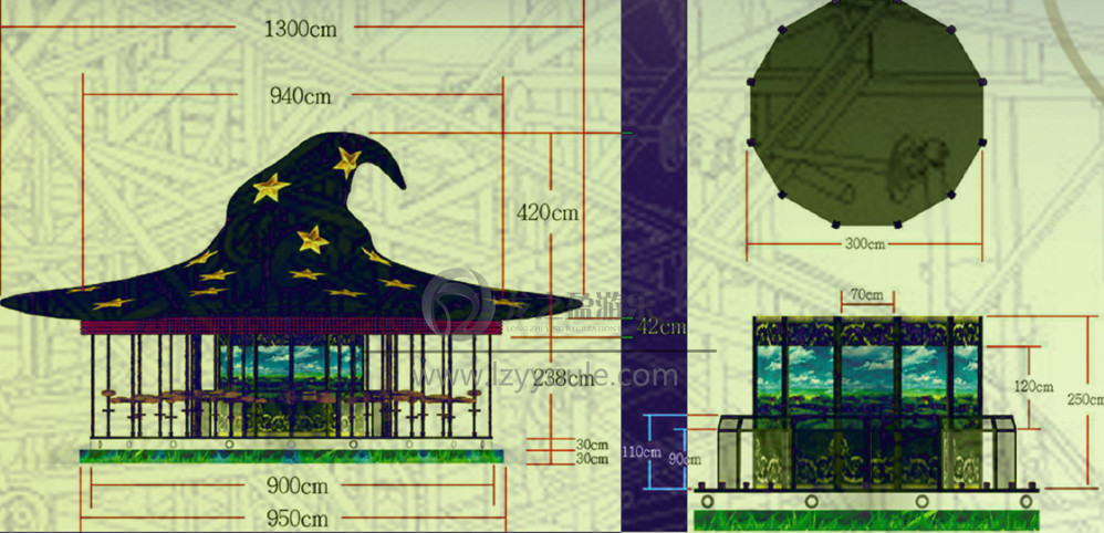 帽子上面設計了七束不同顏色的巨型燈光。頓時成為游樂場的地標式游樂設備!