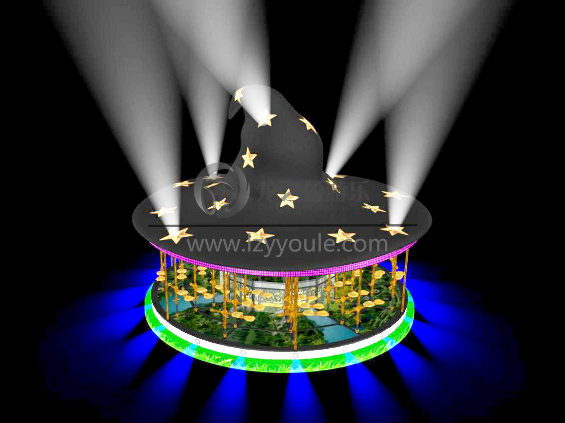 飛天魔帽是許昌龍之盈游樂設備研發(fā)的一款新型游樂設備。該產(chǎn)品結合著名電影《哈利·波特》元素,設備整體是一個巨型的巫師帽!
