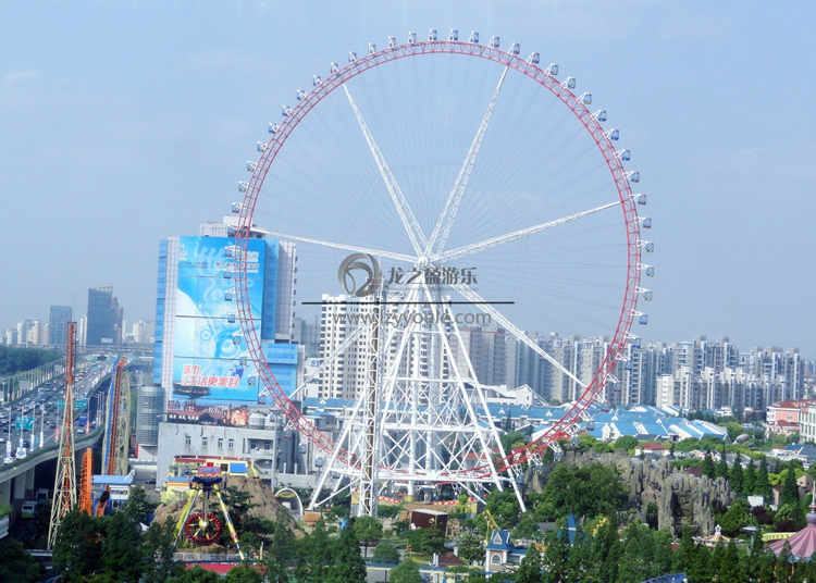 龍之盈摩天輪是每一個(gè)大型游樂(lè)園里必不可少的一款游樂(lè)園設(shè)備,我們所知道的大型游樂(lè)設(shè)備摩天輪,又稱觀覽車,是一種大型轉(zhuǎn)輪狀的機(jī)械建筑設(shè)施,上面掛在輪邊緣的是供乘客乘搭的座艙。乘客坐在摩天輪慢慢的往上轉(zhuǎn),可以從高空俯瞰四周景色。最常見(jiàn)到摩天輪存在的場(chǎng)合是游樂(lè)園、主題公園與園游會(huì),也是游樂(lè)場(chǎng)的地標(biāo)性景點(diǎn)。每個(gè)人的青春里都有摩天輪的身影,代表著夢(mèng)幻、意味著放飛、彰顯著個(gè)性,正值年少或者回味當(dāng)年,坐一坐摩天輪定會(huì)讓人思緒飛揚(yáng)。